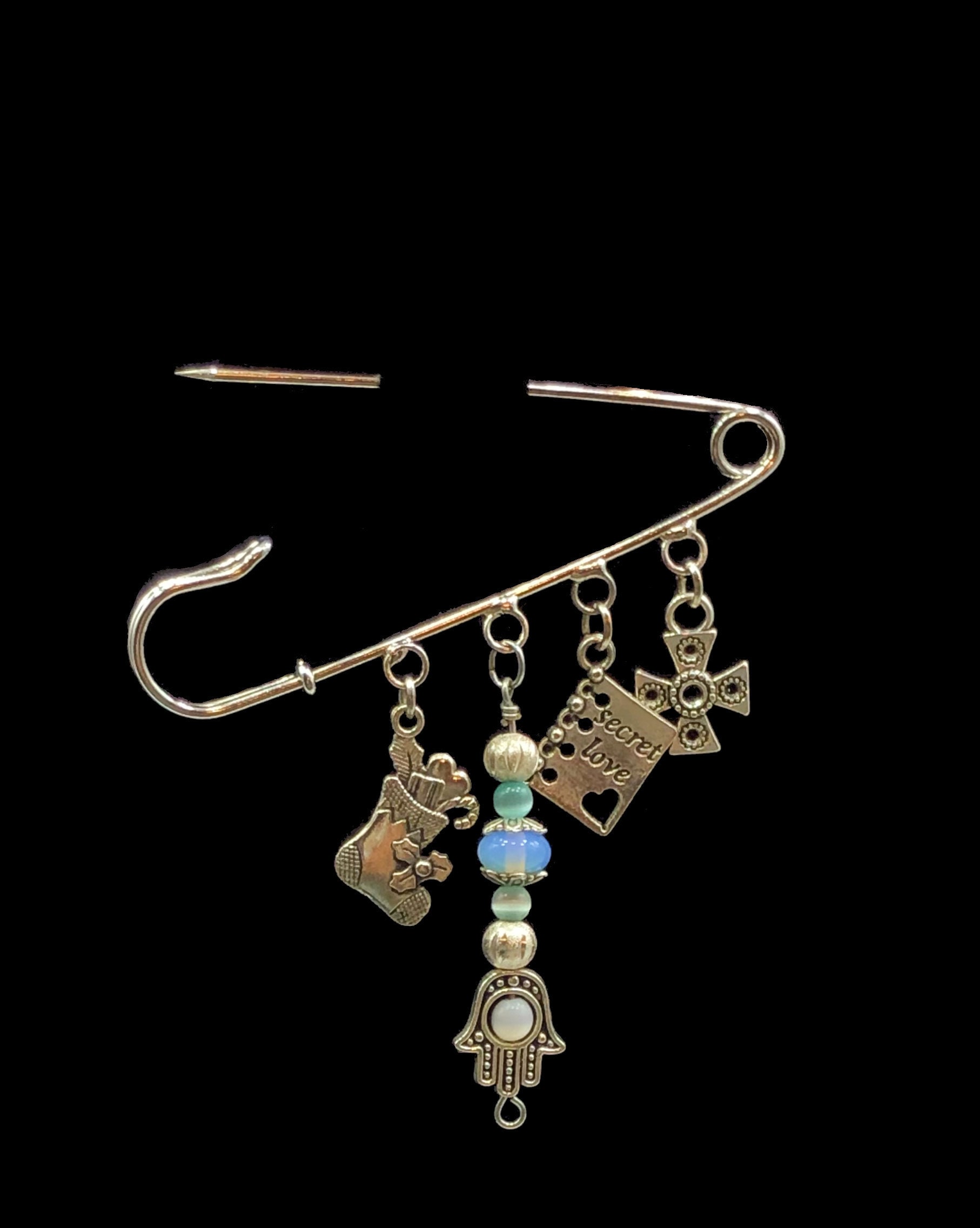 Safety Pin Brooch, Brooch Pin, Safety Pin Crafts, Hamsa Charm, Kilt Pin Safety Pin With Charms safety pin christmas charm bracelet. safety pins come in handy for so many different uses, and today, i have over 15 creative ideas to turn safety pins into. Safety pin brooch for charms. check out our safety pin charms selection for the very best in unique or custom, handmade pieces from our charms shops. Akin to the. Safety Pin With Charms.