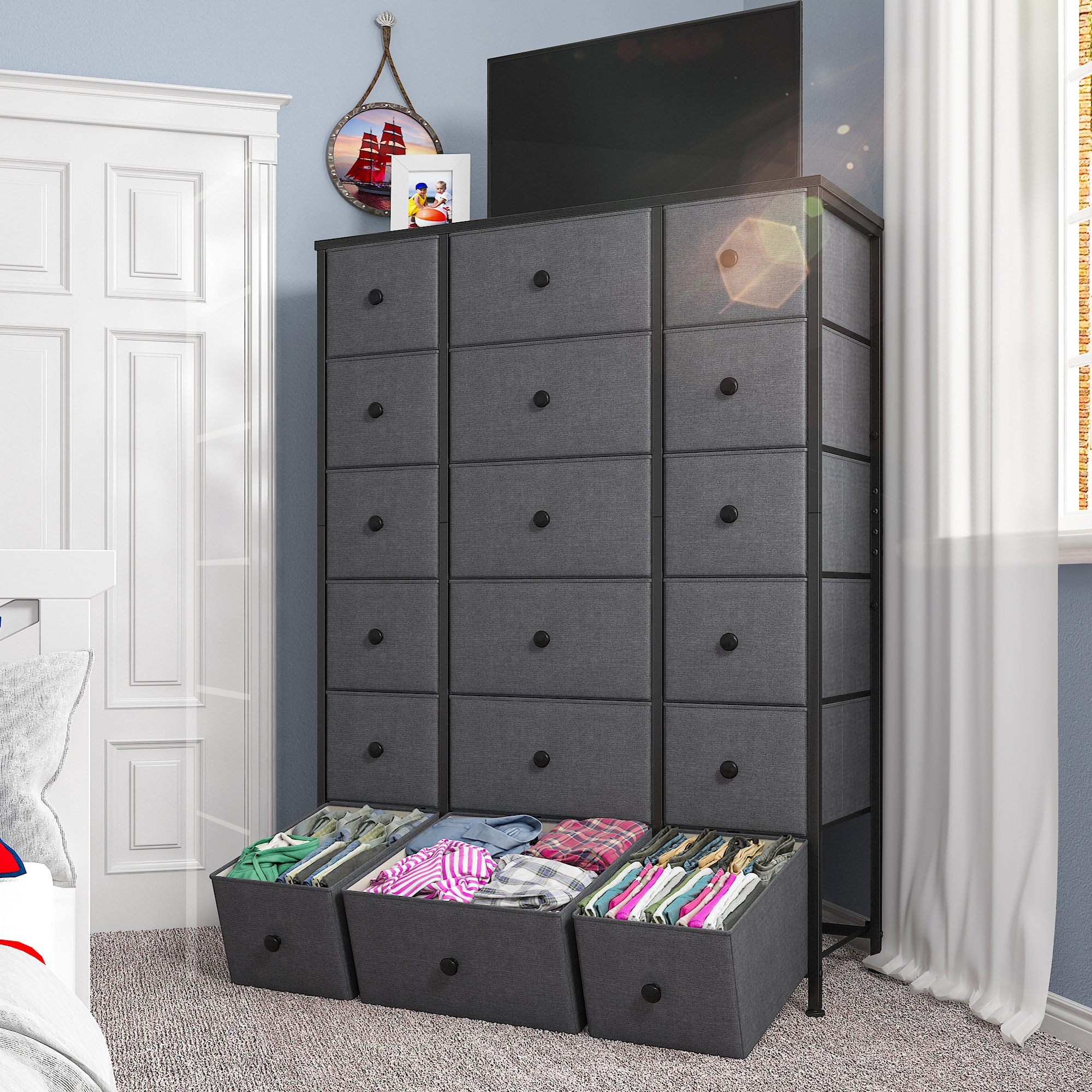EnHomee Large Dresser with 18 Drawer Fabric Storage Dresser for Bedroom Tall Dresser Organizer With multiple drawers, these dressers. a tall chest of drawers offers ample storage space for clothes, linens and other personal items. It will help keep your home. a tallboy dresser isn't just a piece of furniture; a chest of drawers, tallboy, or dresser is a stylish and functional way to increase your bedroom storage. It's a storage. Tall Dresser Organizer.
