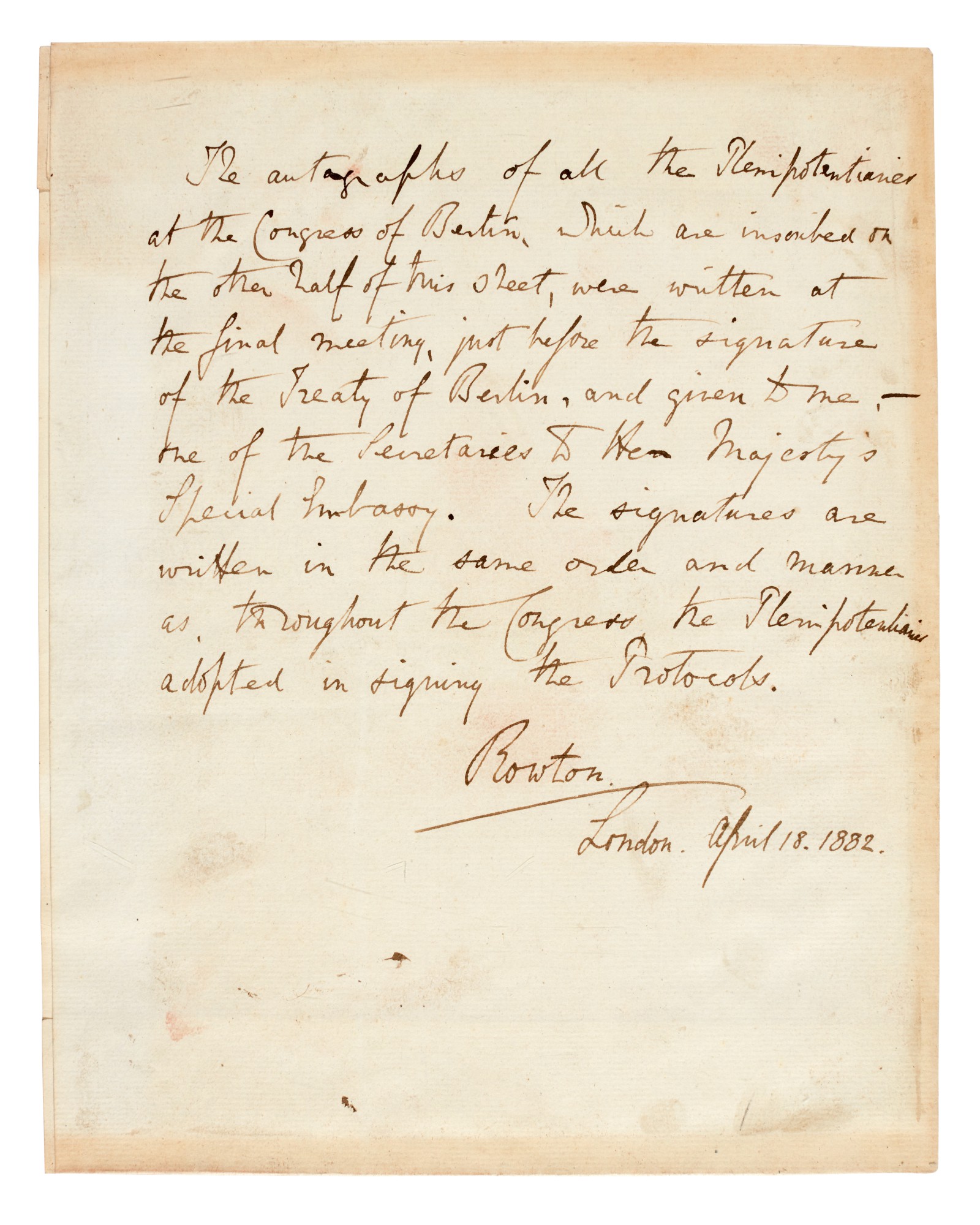TREATY OF BERLIN set of 20 signatures, written just prior to the