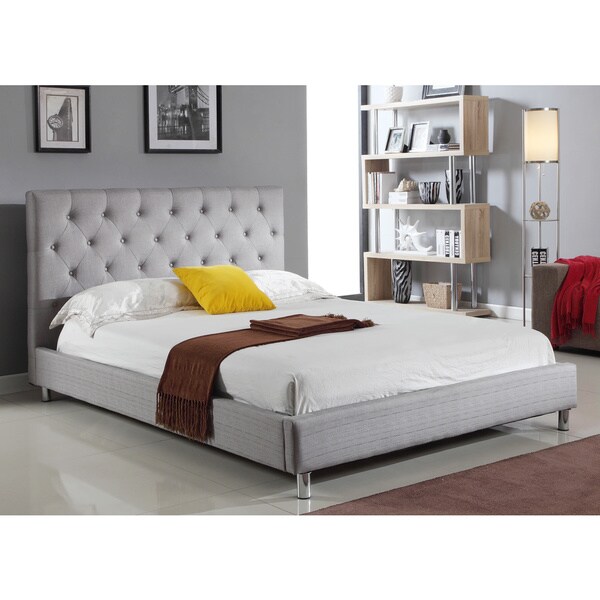 Shop Abbyson Newport Grey Tufted Linen Platform Bed Free Shipping