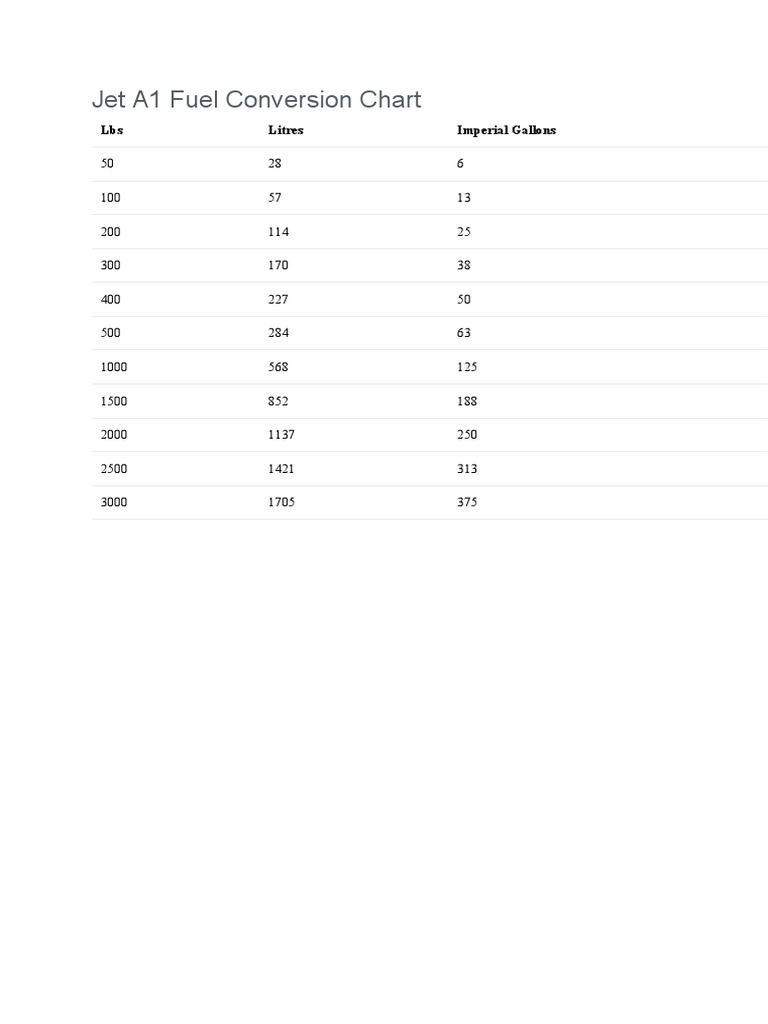 Jet A1 Fuel Conversion Chart PDF