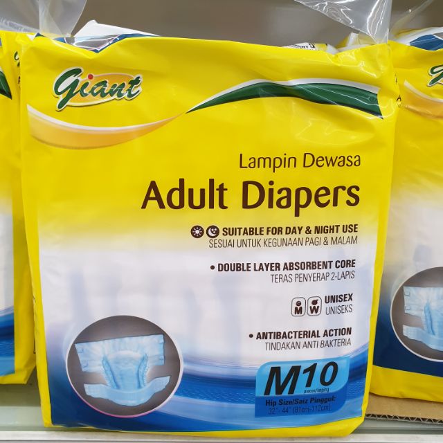Giant Brand Adult Diapers Size M 10 pcs, L 8 pcs, XL 8 pcs Shopee