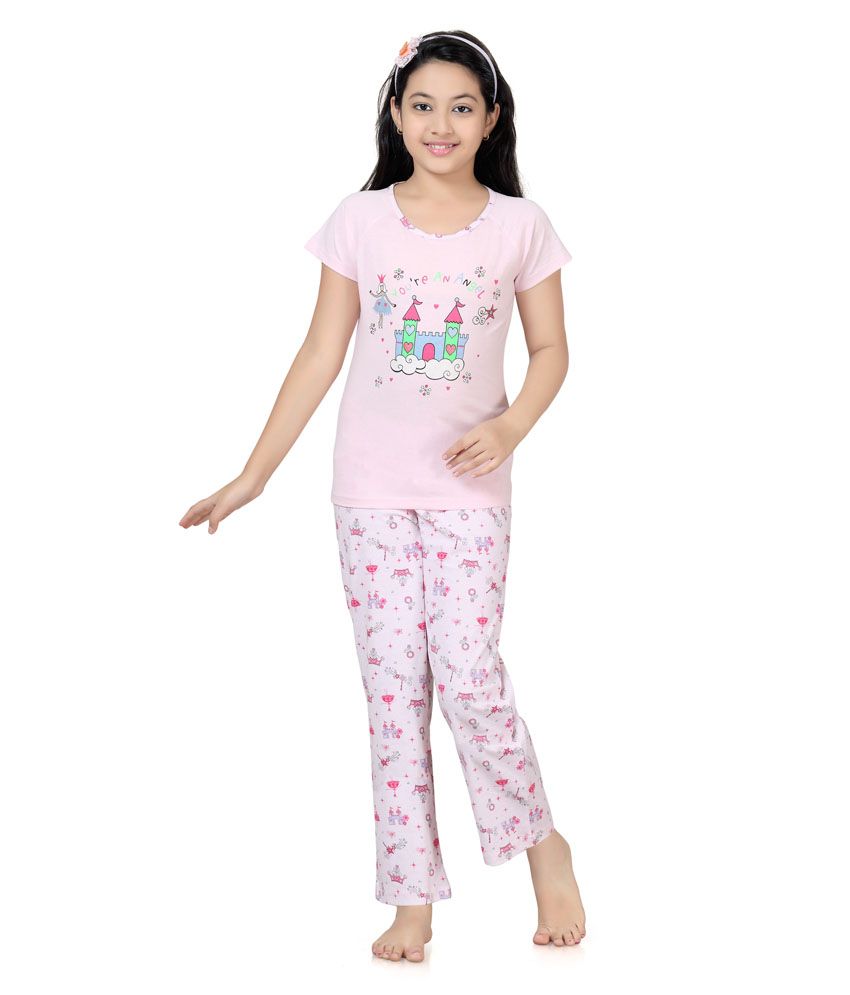 11 OFF on Kombee Kids Girls Pyjama Top Bottom Set Pink on Snapdeal