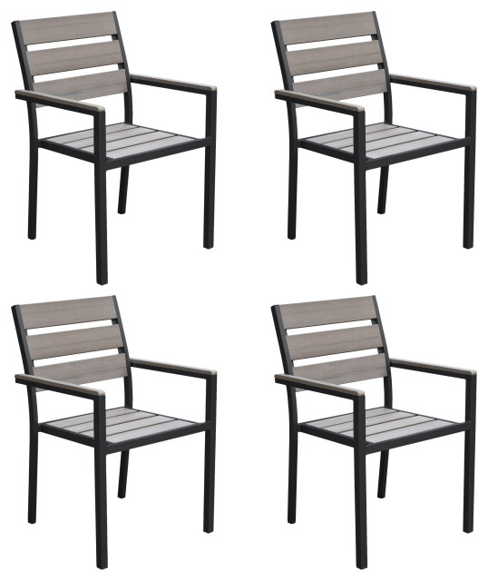 CorLiving Gallant Sun Bleached Black Outdoor Dining Chairs, Set of 4