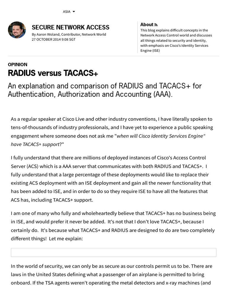 RADIUS Versus TACACS+ Network World PDF