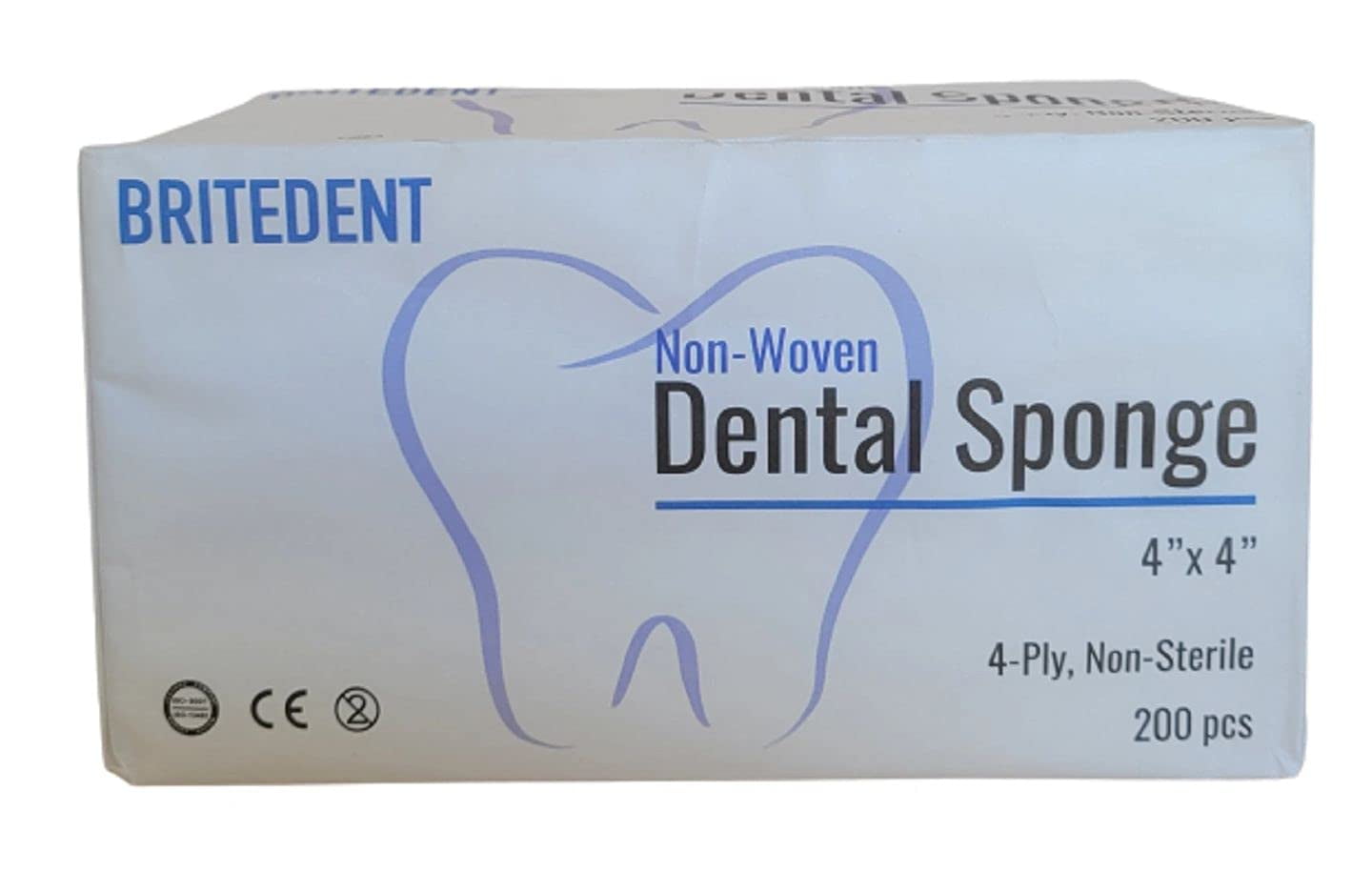 BRITEDENT Non Woven Sponges 4"X4" 4 Ply, NonSterile Cotton Dental Gauze. 3 Packs of 200 (600 PCS