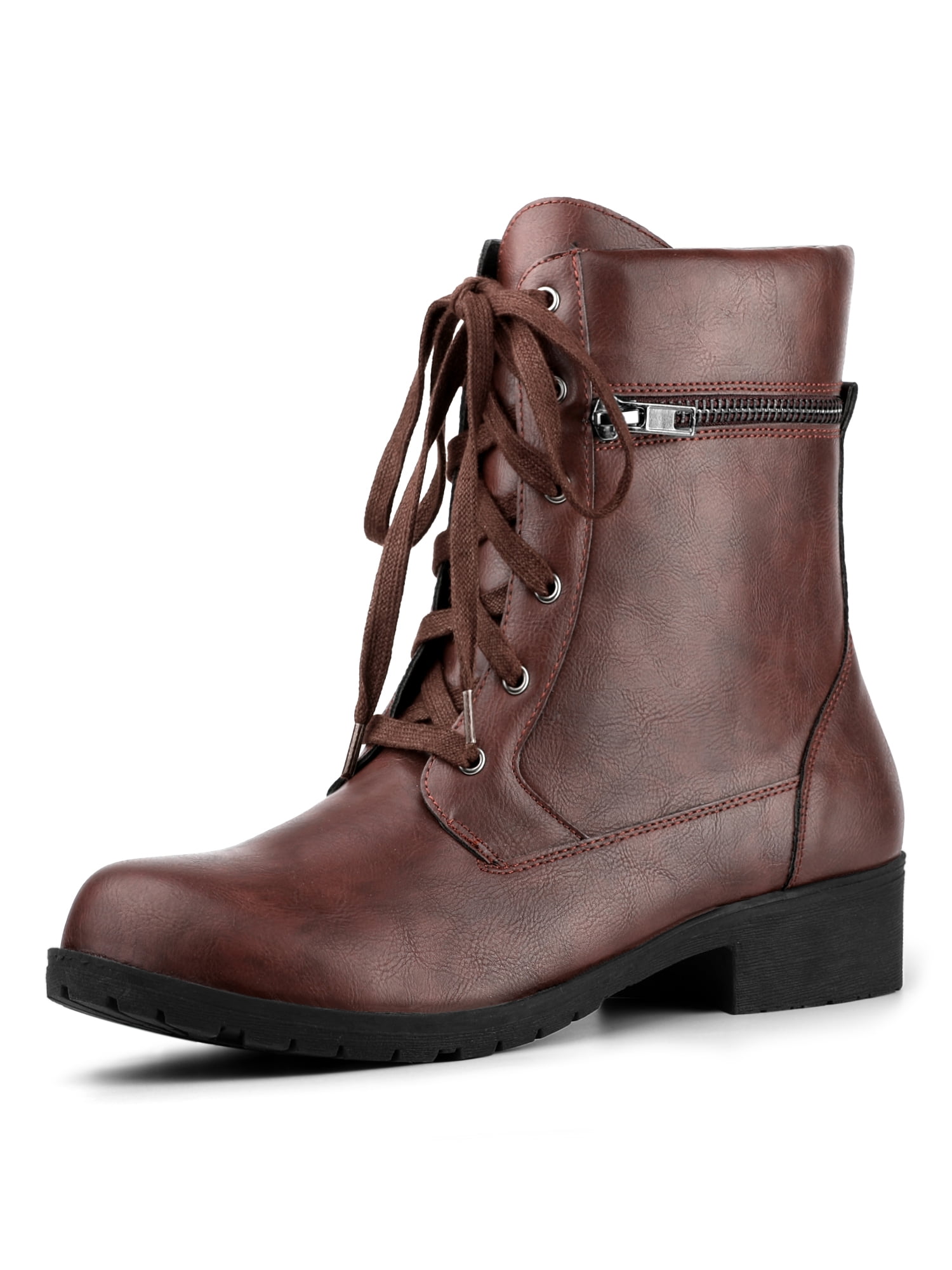 Women's Low Heel Lace Up Combat Burgundy Boots 7 M US Walmart Canada