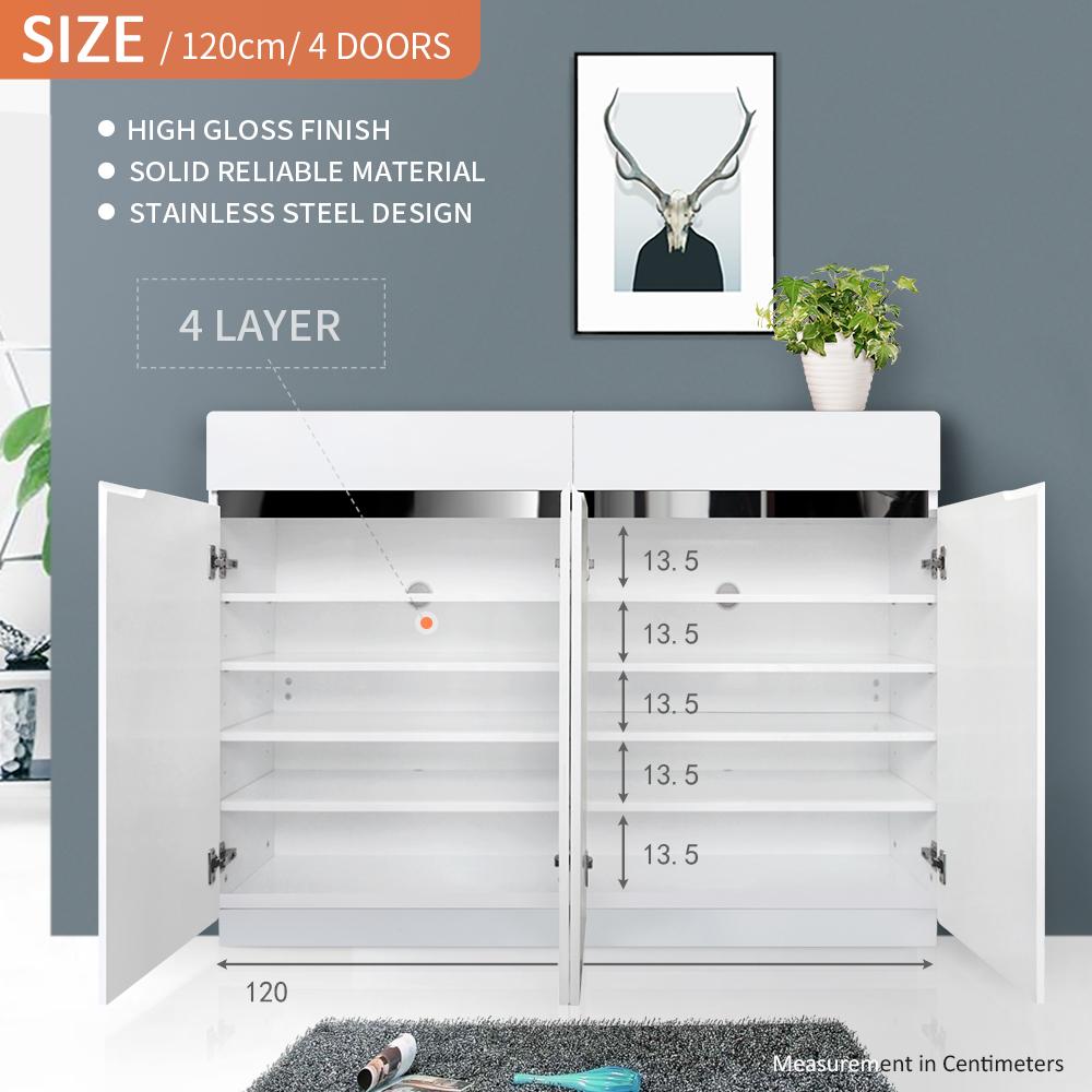 NEW White High Gloss Shoe Rack Storage Organiser 4 Door 120cm