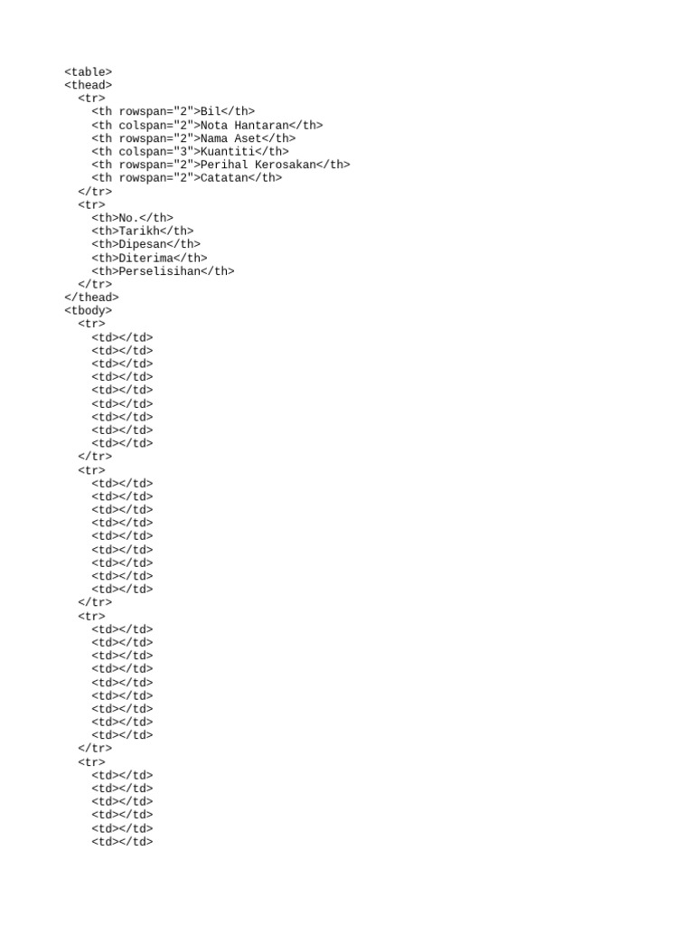 Table HTML Code PDF