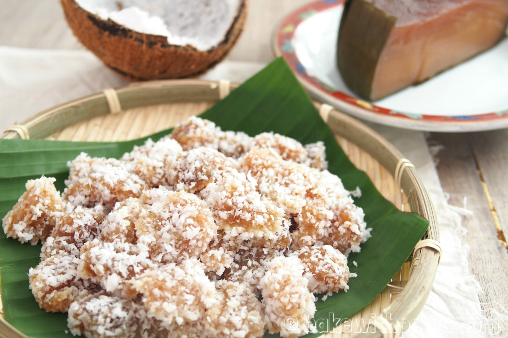 Steamed Nian Gao with Grated Coconut (Sweet Glutinous Rice Cake) BAKE