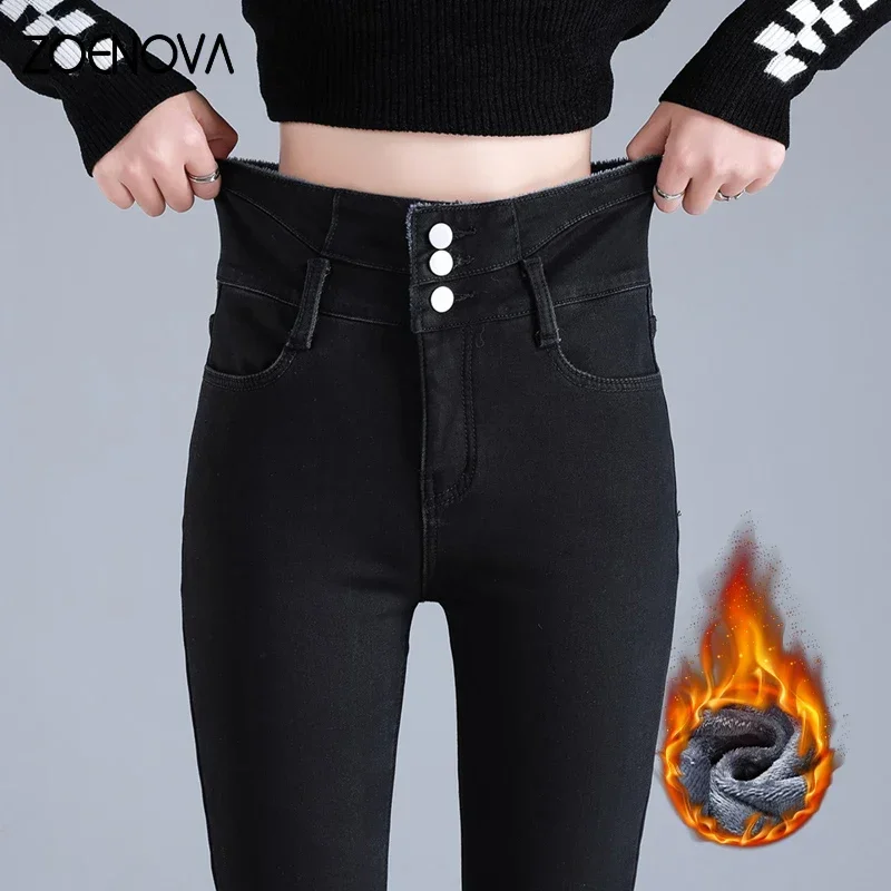 ZOENOVAFleeceVelvetElasticWomensJeans2023WinterThickenWarm