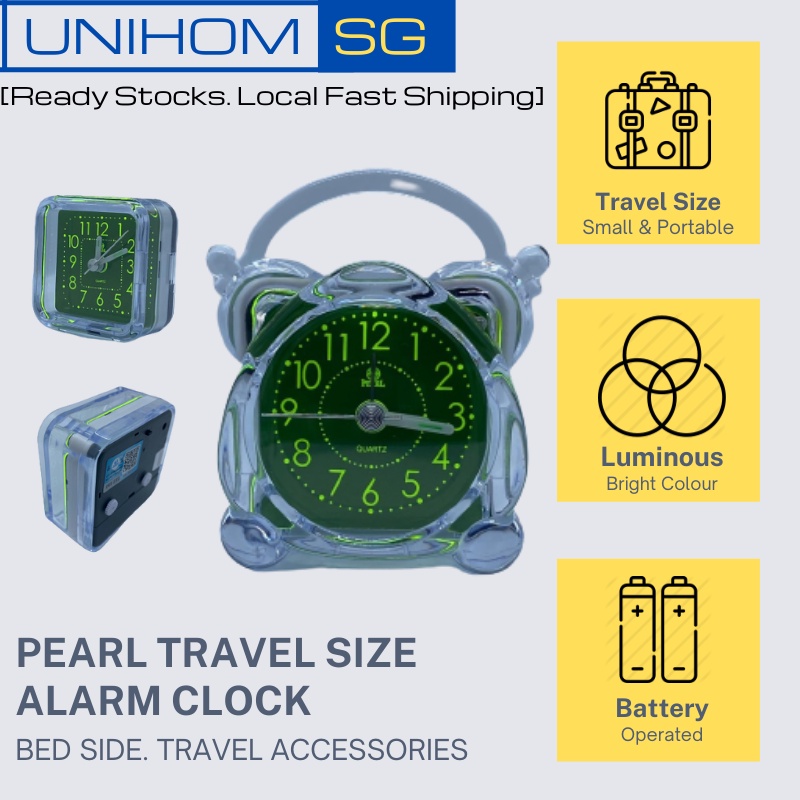 UnihomSG [ReadyStock] Pearl Travel Size Alarm Clock Silent Snooze Light