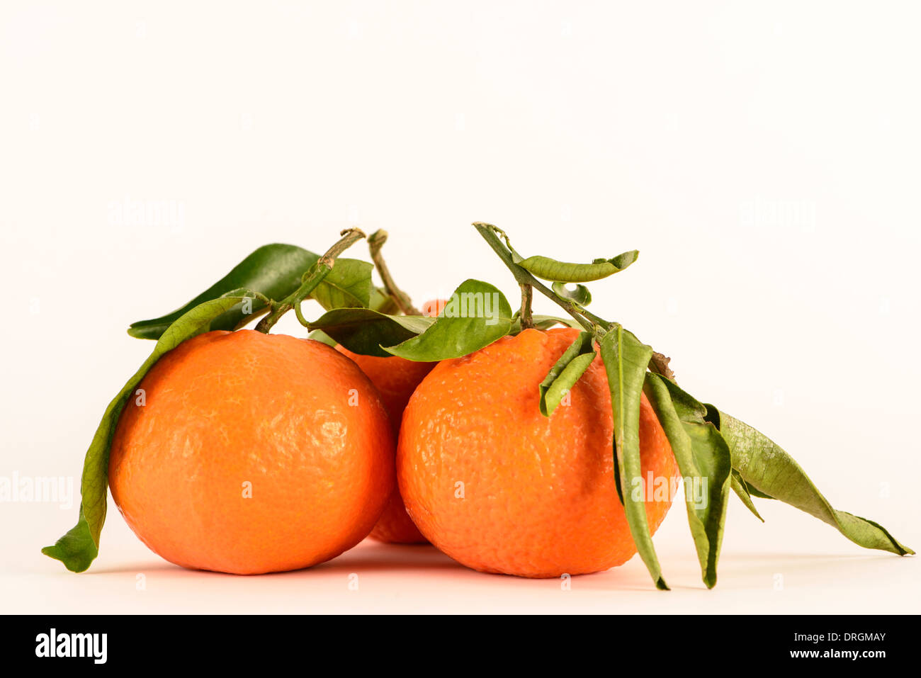 3 Satsumas with leaves on a white background Stock Photo Alamy