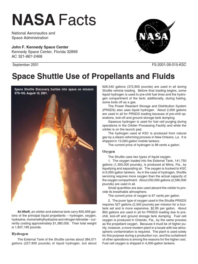 NASA Facts Space Shuttle Use of Propellants and Fluids PDF Space