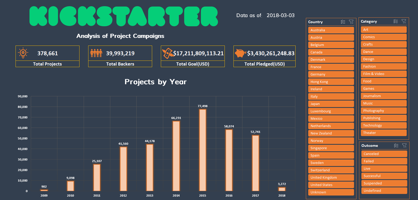 Dashboard Week Day 3. Kickstarter Projects The Data School Down Under Kickstarter Dashboard bring your creative idea to life and start your kicksta. once your kickstarter project is live, make sure to explore the beta version of our new advanced dashboard — it provides details that can help you better understand your backers, optimize your marketing strategies, and much more. the fulfillment dashboard is a tool to help creators track. Kickstarter Dashboard.