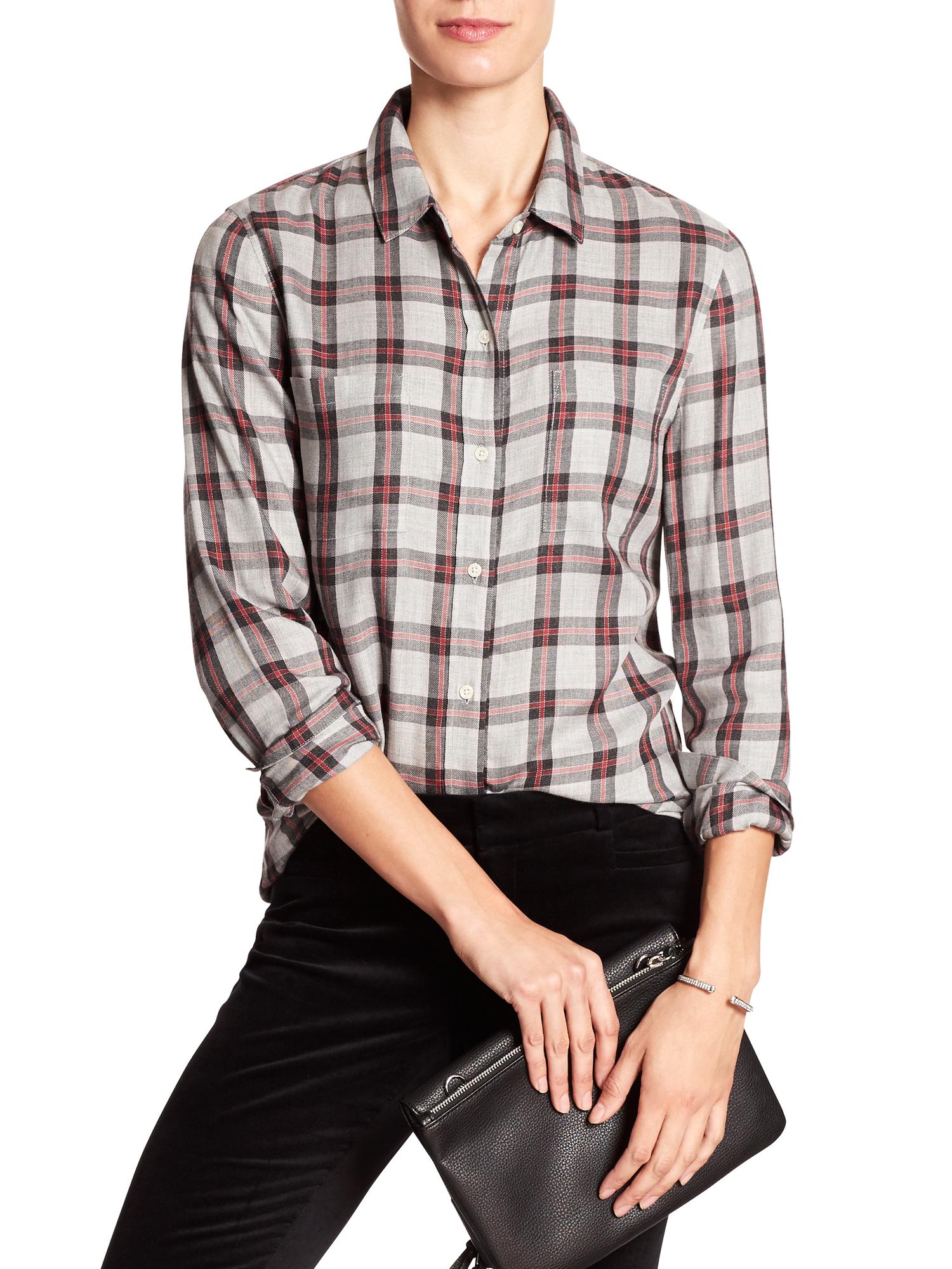 Drapey Plaid Boyfriend Shirt Banana Republic Factory