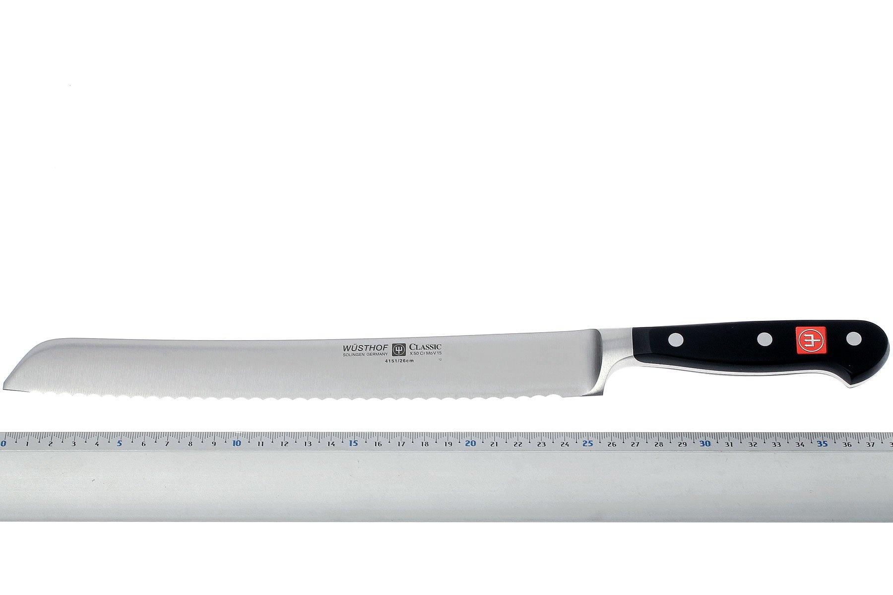 Wüsthof Classic Bread Knife 26 cm, 4151 Advantageously shopping at Wusthof Classic Bread Knife 26Cm A classic amongst the range of knives that belong in every kitchen: This wüsthof classic bread knife, 26 cm is a classic which belongs in every kitchen. In addition to cutting loaves of bread you can also use this knife to cut vegetables and fruit with a. The classic series offers a versatile range of cutlery that satisfies everyone from. Wusthof Classic Bread Knife 26Cm.