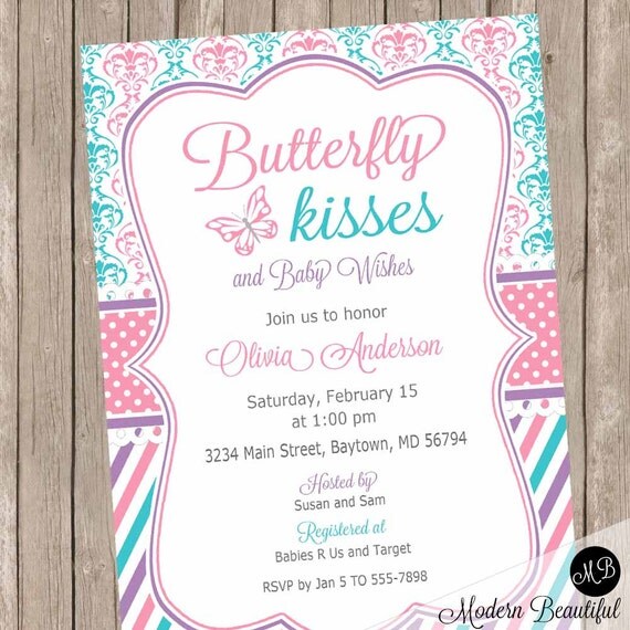 Butterfly kisses baby shower invitation butterfly baby