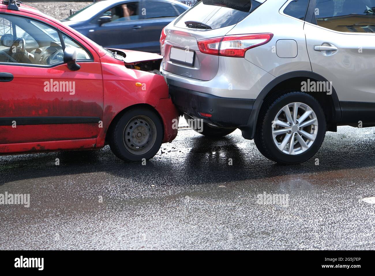 Collision of Two Cars. Broken Bumper and Hood. Car Accident on the Car Hood Stuck After Accident how to fix a car hood that won’t close? after an accident, it is possible for the hood of your car to become stuck and unable to open. When done correctly, the hood should shift and raise slightly, which you can then open with the exterior latch. Here are the main reasons your car hood won’t close after. Car Hood Stuck After Accident.