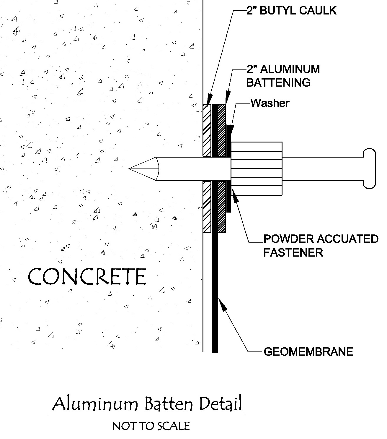 Geomembrane batten detail for concrete connection of PVC liner