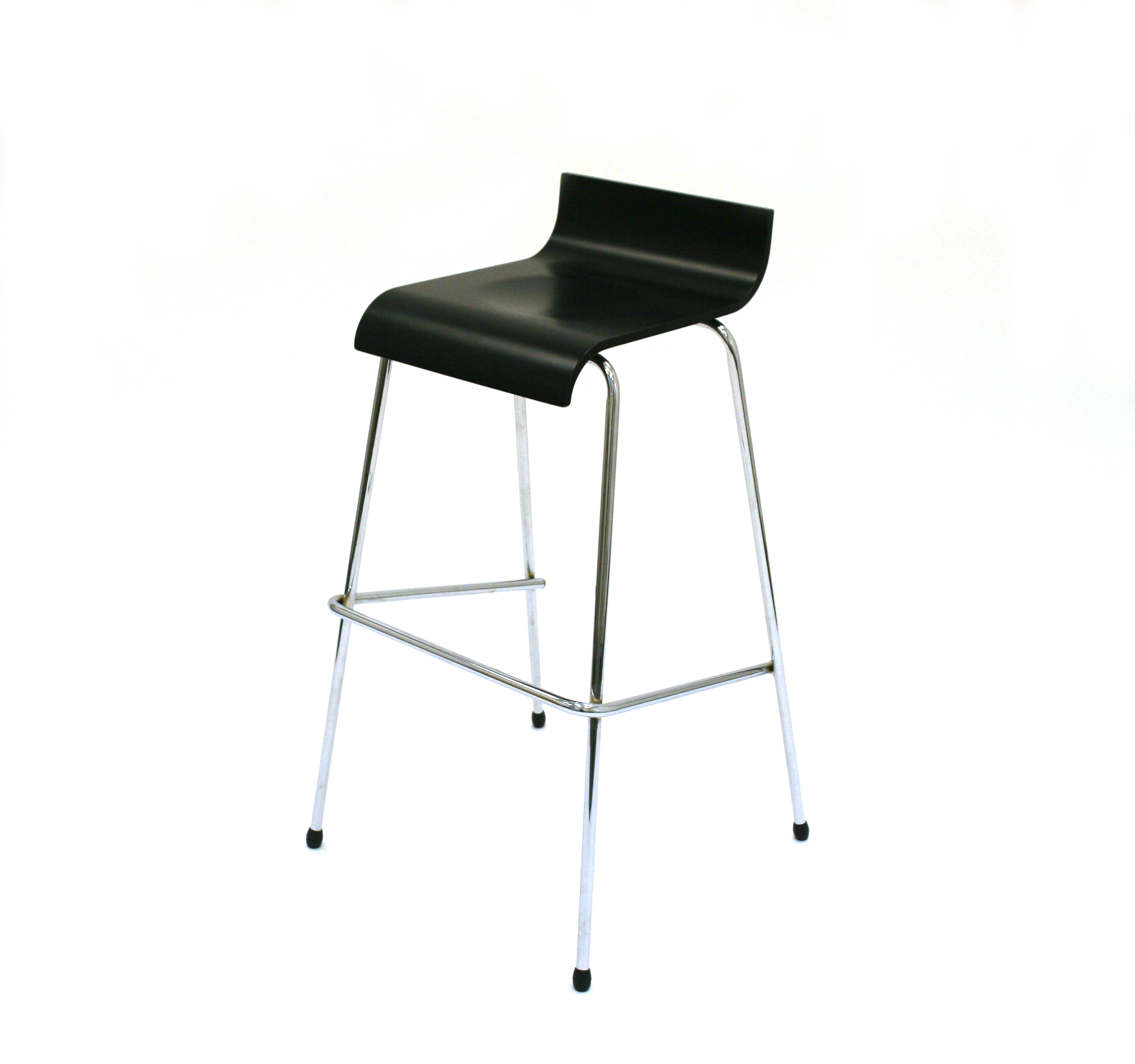 Black wooden bar stools with a chrome metal frame and foot rest BE
