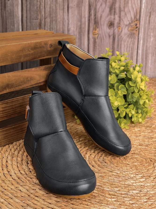 Women'S NonSlip Ankle Boots Round Toe Low Wedge Heel Cowboy Boots