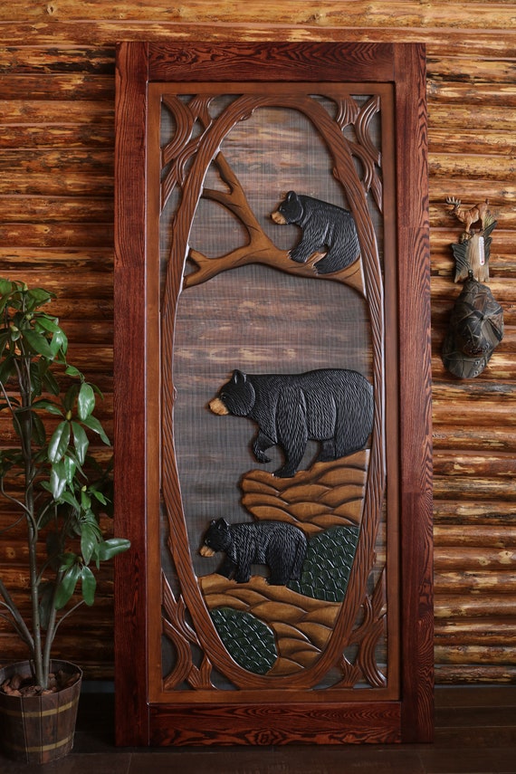 Bear Family Screen Door Bear Family Pine Screen Door Bear Etsy