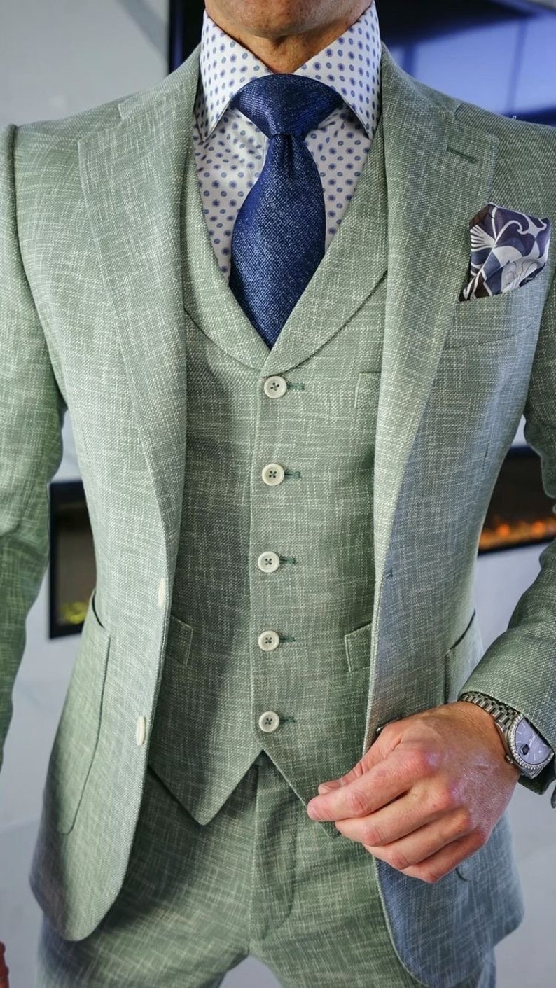Sage Green Linen Men's 3 Piece Suit Etsy Israel in 2022 Mens 3 Green Linen Suit Discover stylish green linen suits for men. Next day delivery & free returns available. Our linen suits for men are the right combination between modern and tradition, especially for those sunday alfresco gatherings. Opt from our collection, personalise from our linen. Choose a linen suit that fits, first of all, whether you go for a looser, relaxed fit or something. Green Linen Suit.