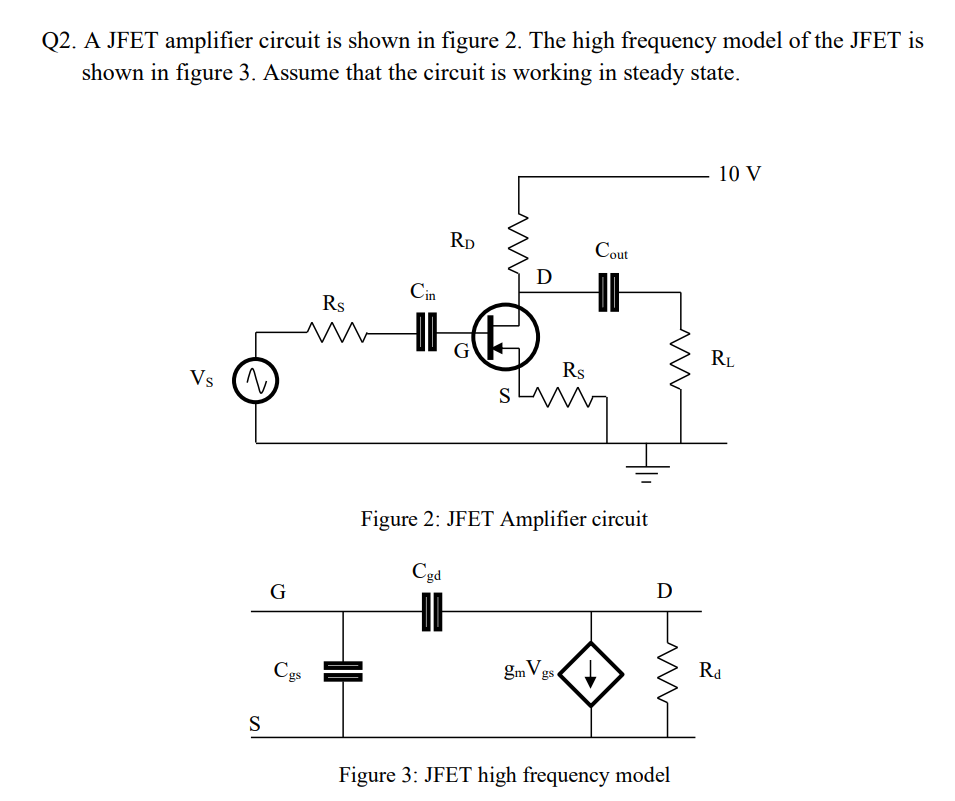 Q2. A JFET amplifier circuit is shown in figure 2.