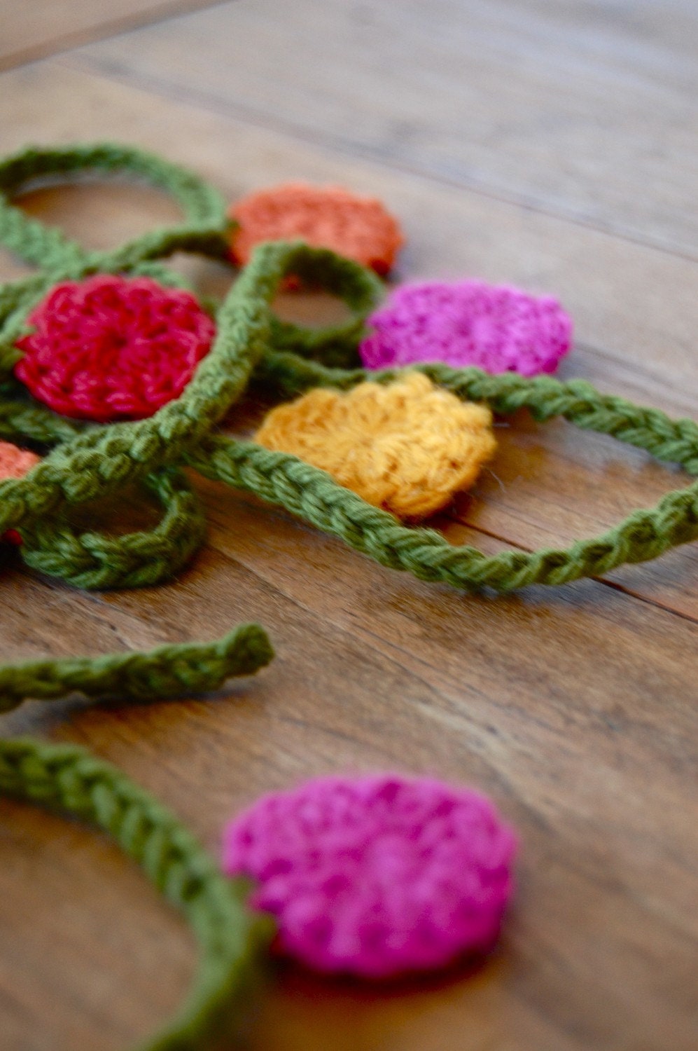 Crochet Flower Garland Bunting Etsy UK Crochet Flowers Garland They only consist of two crochet rounds! These tiny crochet flowers are so quick and easy to make! Use vibrant folk colors, or traditional christmas shades to make your crochet flower garland unique. Whether draped over a doorway, wrapped around a bannister, or used as a festive tabletop accent, these crochet garlands add a. With easy to follow instructions, this. Crochet Flowers Garland.
