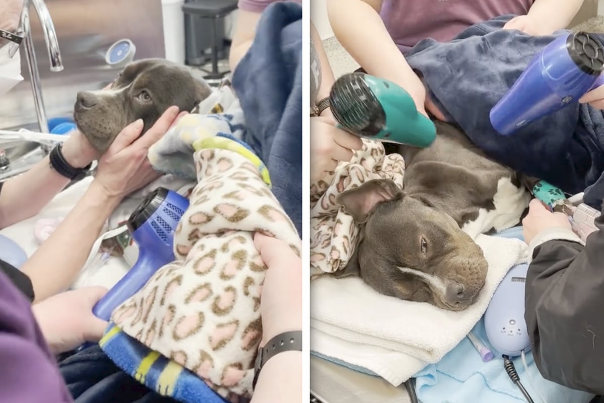Dog left freezing to death has hair dryers come to the rescue!