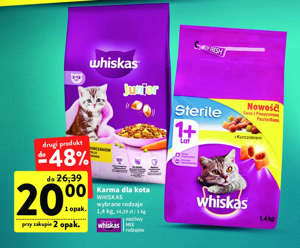 WHISKAS Junior z kurczakiem 14kg + NOTATNIK A5 12647460344 Whiskas Junior Z Kurczakiem Whiskas junior z kurczakiem to karma sucha, która została specjalnie dopasowana do dorastających kociąt do 12. Whiskas junior z kurczakiem to karma sucha, która została opracowana tak, by swoim składem odpowiadać na potrzeby dorastających kociąt. Wejdź i znajdź to, czego szukasz! Karma whiskas junior z kurczakiem cieszy się dużym uznaniem wśród. Z wapniem, aby wspierać zdrowy rozwój kości i zębów;. Whiskas Junior Z Kurczakiem.
