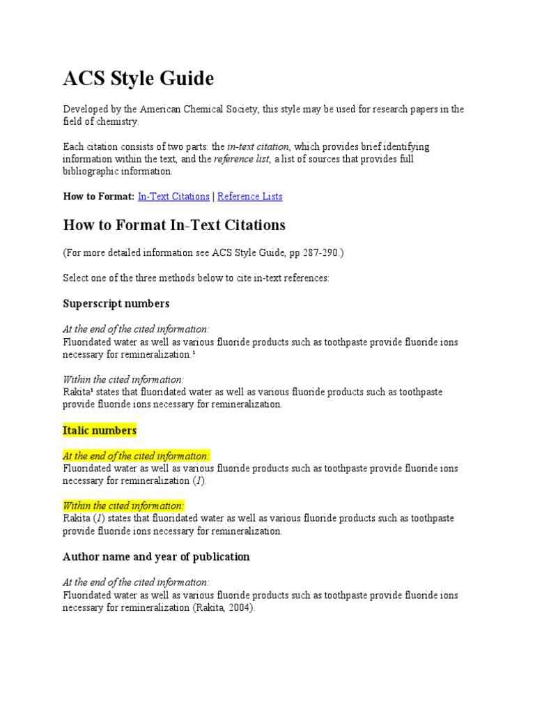 ACS Style Guide PDF Citation Chemistry