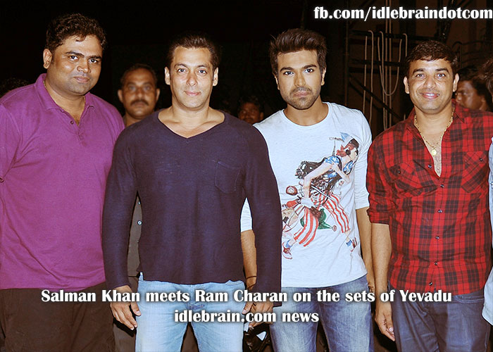 Salman Khan meets Ram Charan on the sets of Yevadu Telugu cinema news