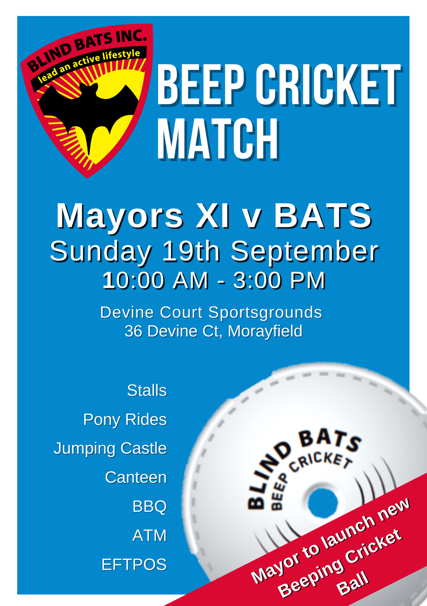 4 Activities Blind Bats Inc. Blind Bats Morayfield The blind bats, based at morayfield, north of brisbane, hosts come and try beep cricket days every sunday. It's a fabulous charity right here in morayfield. We really like their objectives. On this website, we hope to provide you with information about our charity, blind bats inc. Over the past year, microelectronic technologies has been working closely with blind bats. Blind Bats Morayfield.