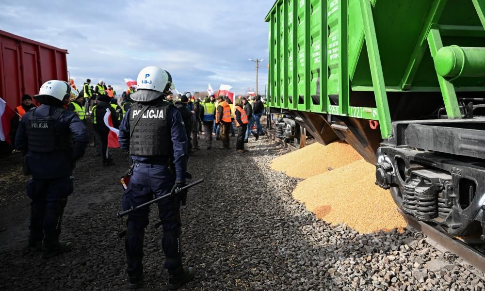 Polish farmers dump grain in protest as Ukraine…