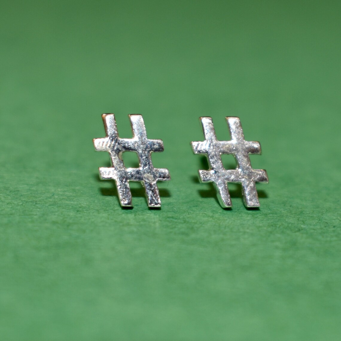 Tiny Hashtag Earrings in Sterling Silver Hashtag Earrings Etsy