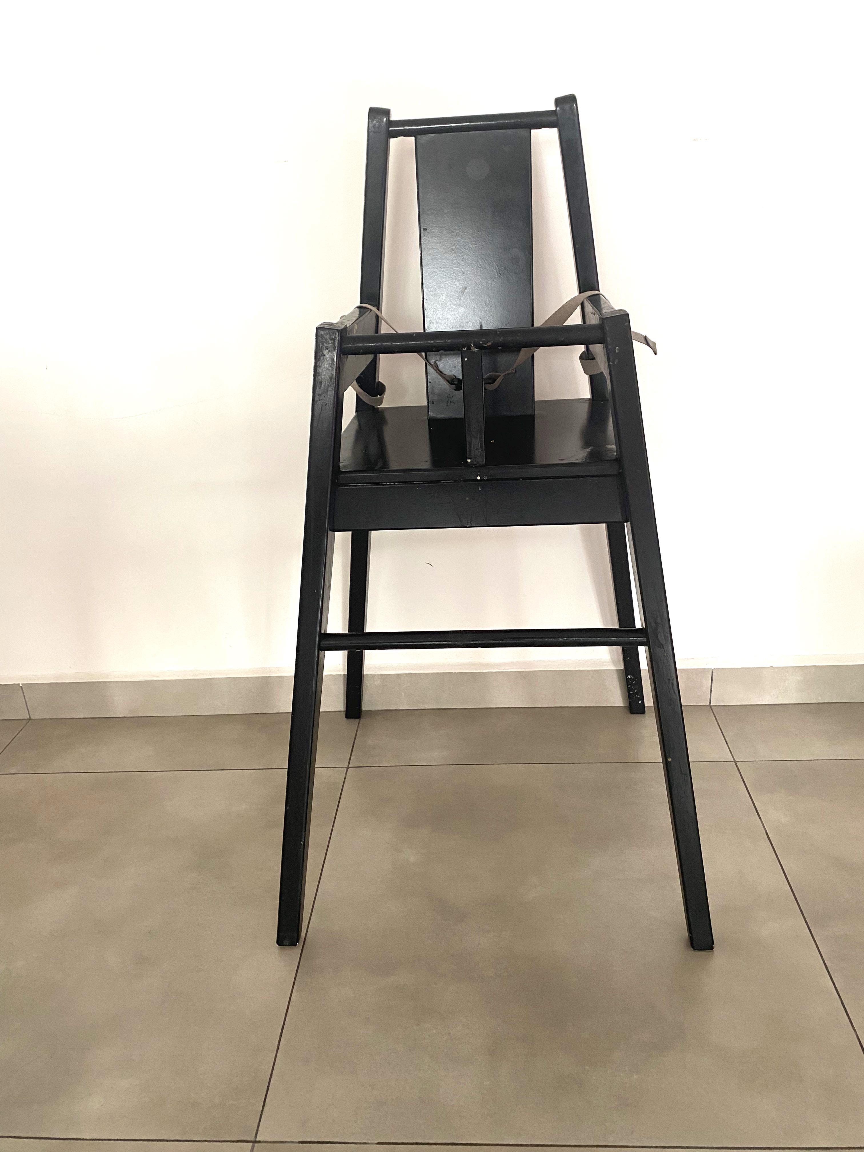 Stackable Kids Baby Wooden Feeding Commercial Home High Chair Black