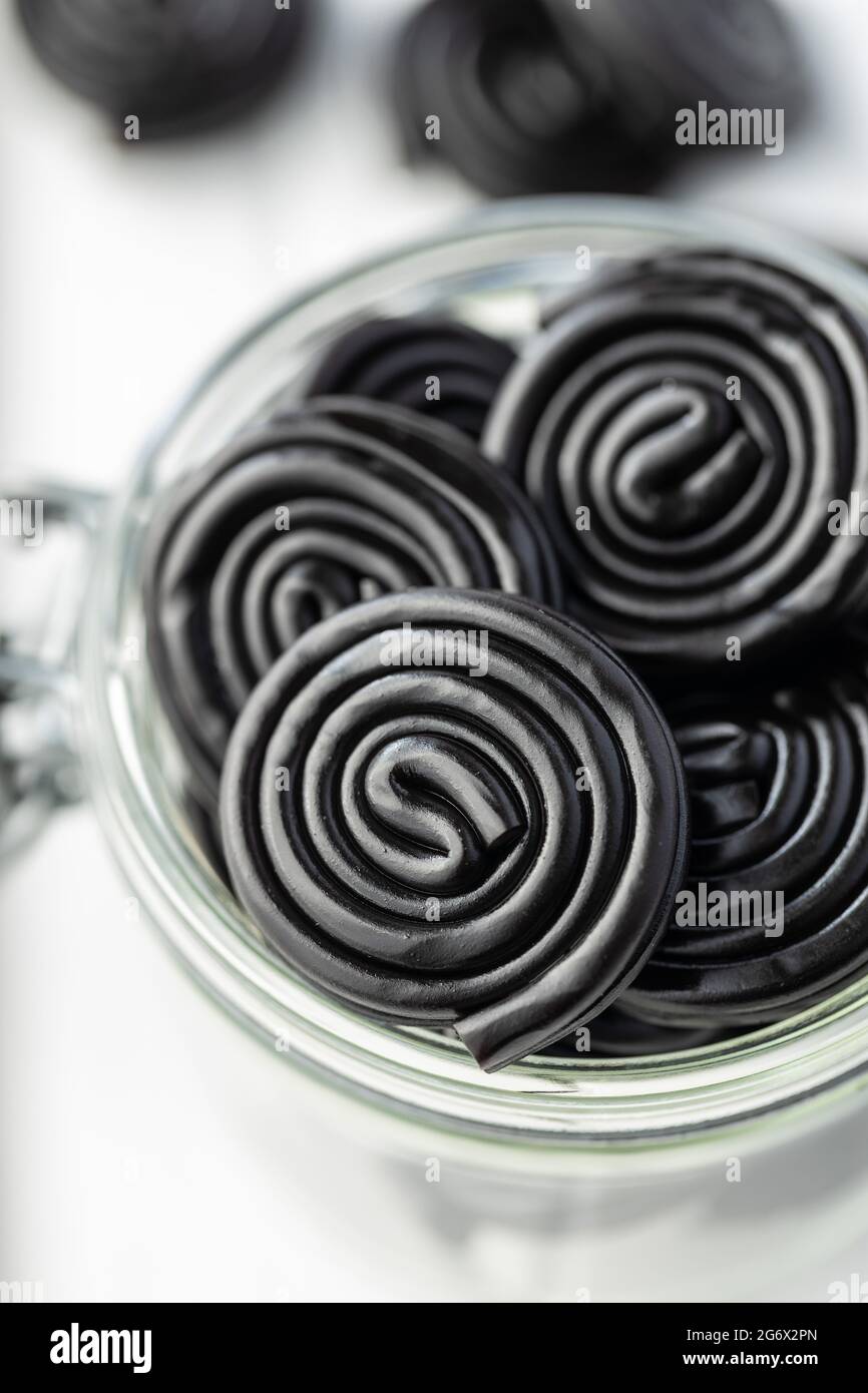 Spiral from liquorice candy in jar Stock Photo Alamy