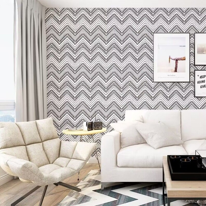 Peel and Stick Geometry Wallpaper Removable Geometry Waves Etsy