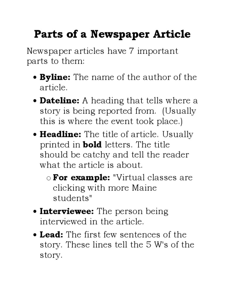 Parts of a Newspaper Article