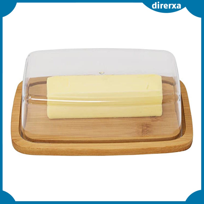 [direrxaMY] Square Butter Box with Lid, Bamboo Butter Dish, Glass Clear