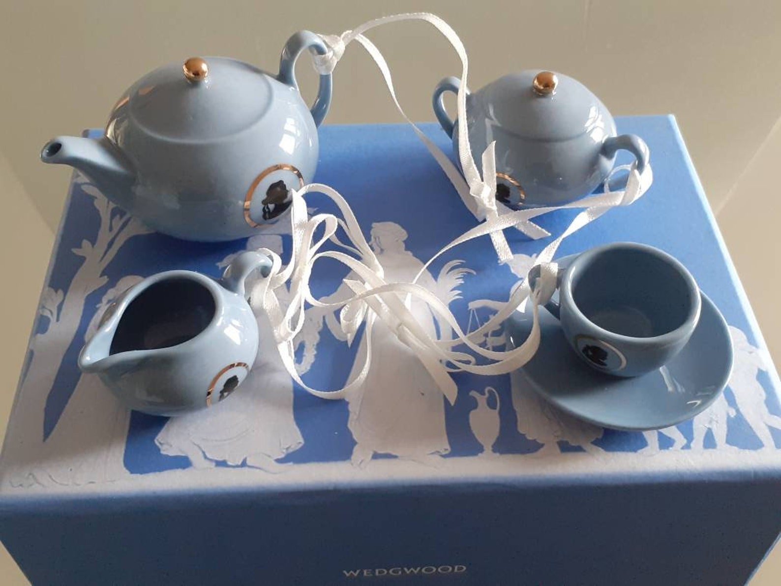 Blue Wedgwood Bone China Cameo Miniature Tea Set Hanging Etsy