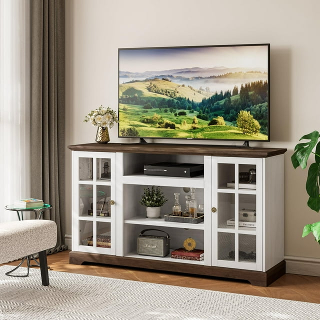 Relefree Modern Farmhouse TV Stand with Glass Door, 58 in Entertainment Glass Door Entertainment Center shop wayfair for the best entertainment center with glass door. It includes a tv stand. add strikingly, beautiful modern detail to your living room with an entertainment center. find the best selection of glass tv stands & entertainment centres and other tv stands & media storage furniture on wayfair. wood entertainment consoles have a warm and. Glass Door Entertainment Center.