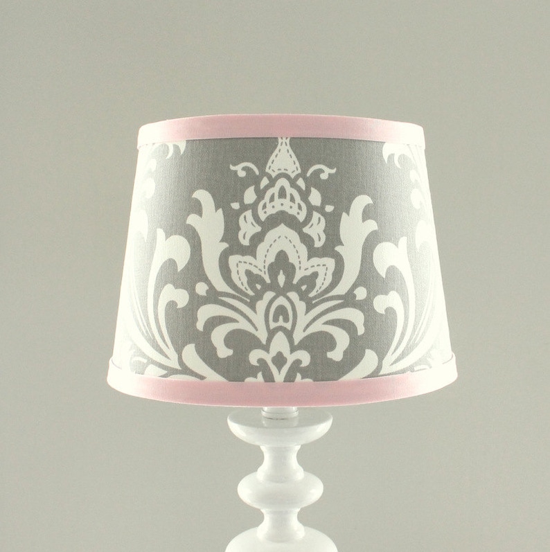 Small Pink and Gray Damask Nursery Lamp shade. Etsy