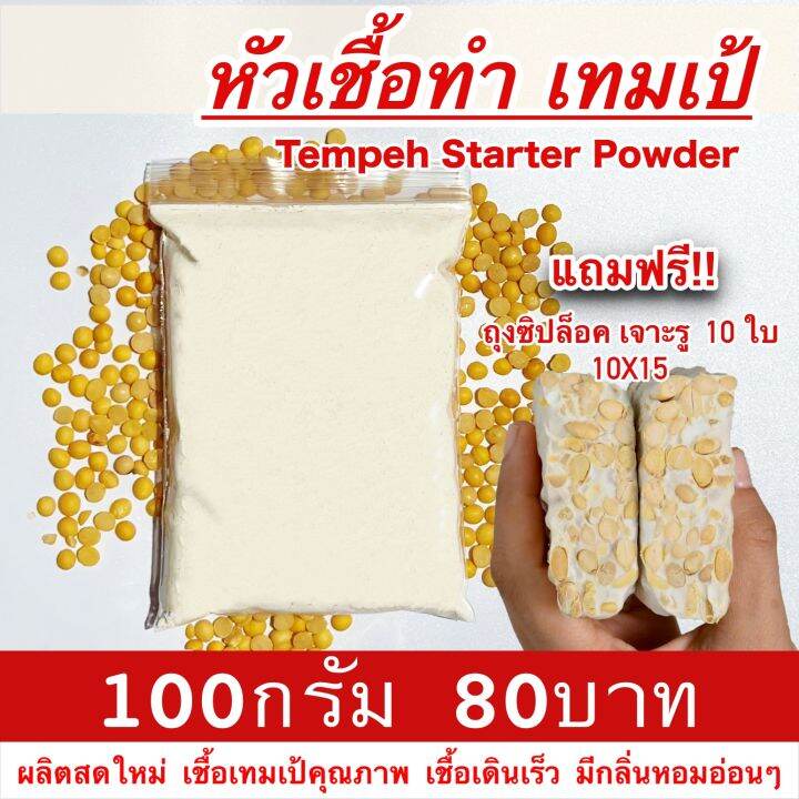 เชื้อเทมเป้ 100กรัม ฟรีถุงซิป คู่มือสอนทำ เทมเป้สด หัวเชื้อเทมเป tempeh