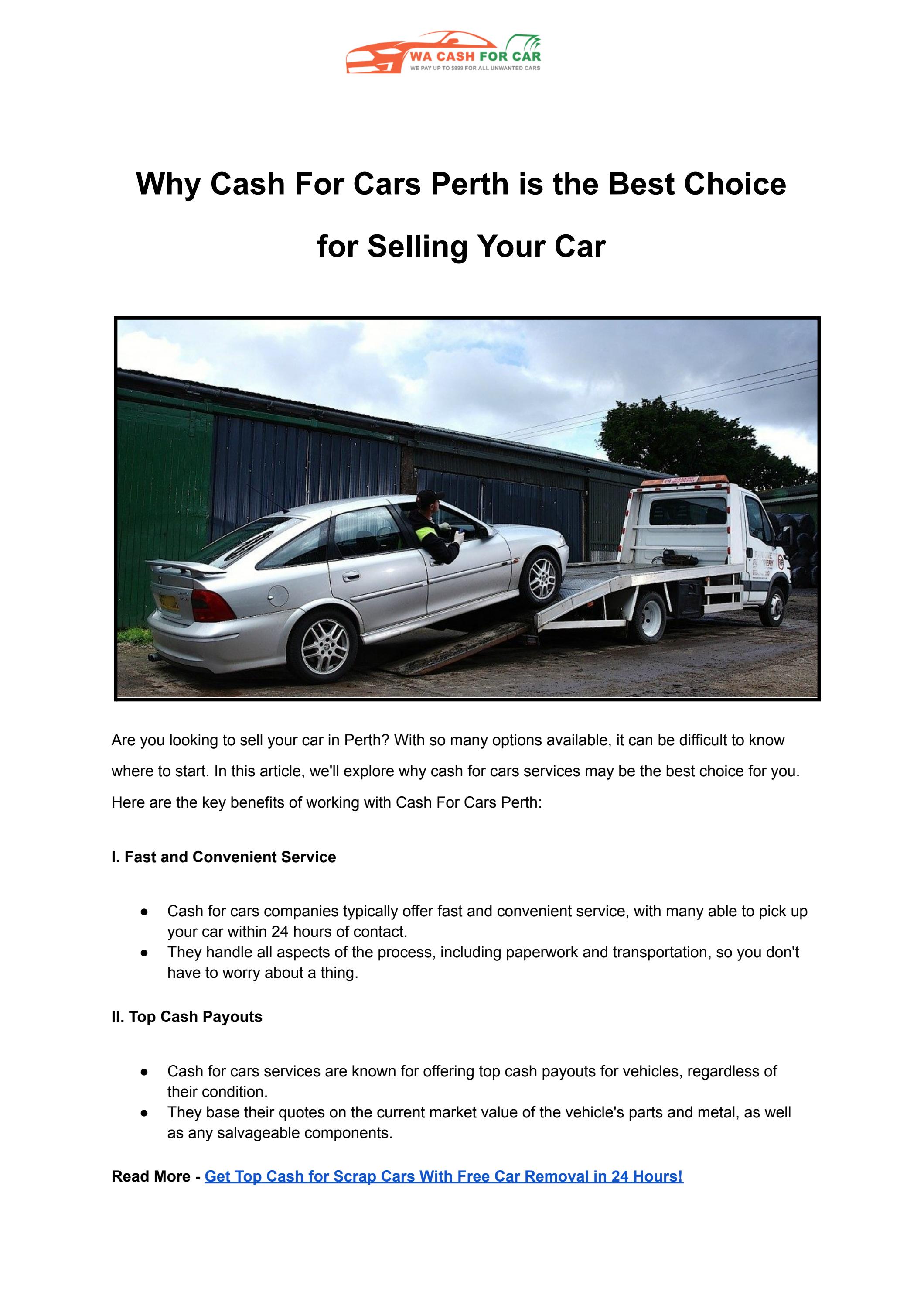 Why Cash For Cars Perth is the Best Choice for Selling Your Car by