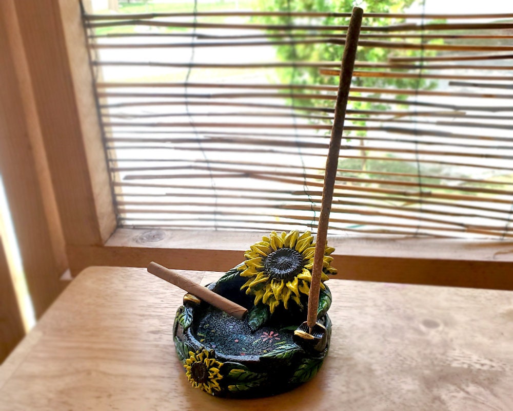 Sunflower Ash Tray Round Cigarette Burner Incense Stick Etsy