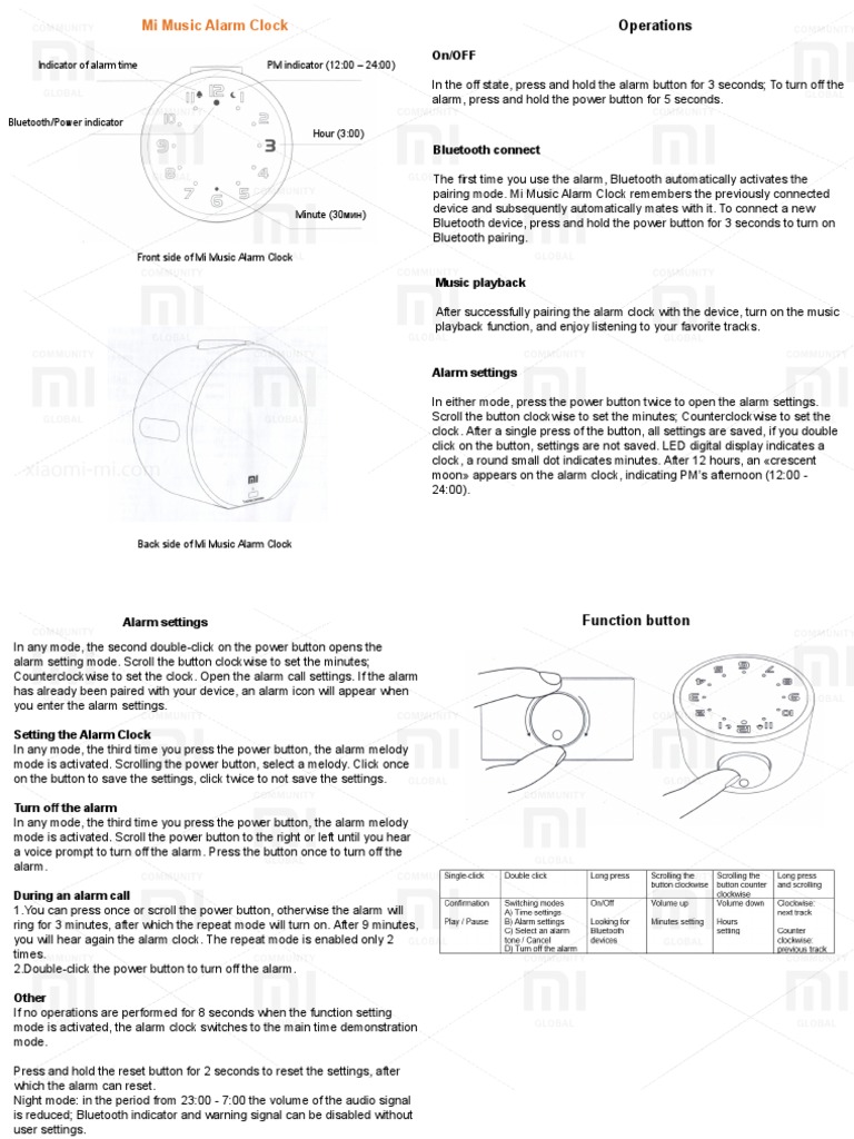 Mi Music Alarm Clock EN PDF Clock Bluetooth