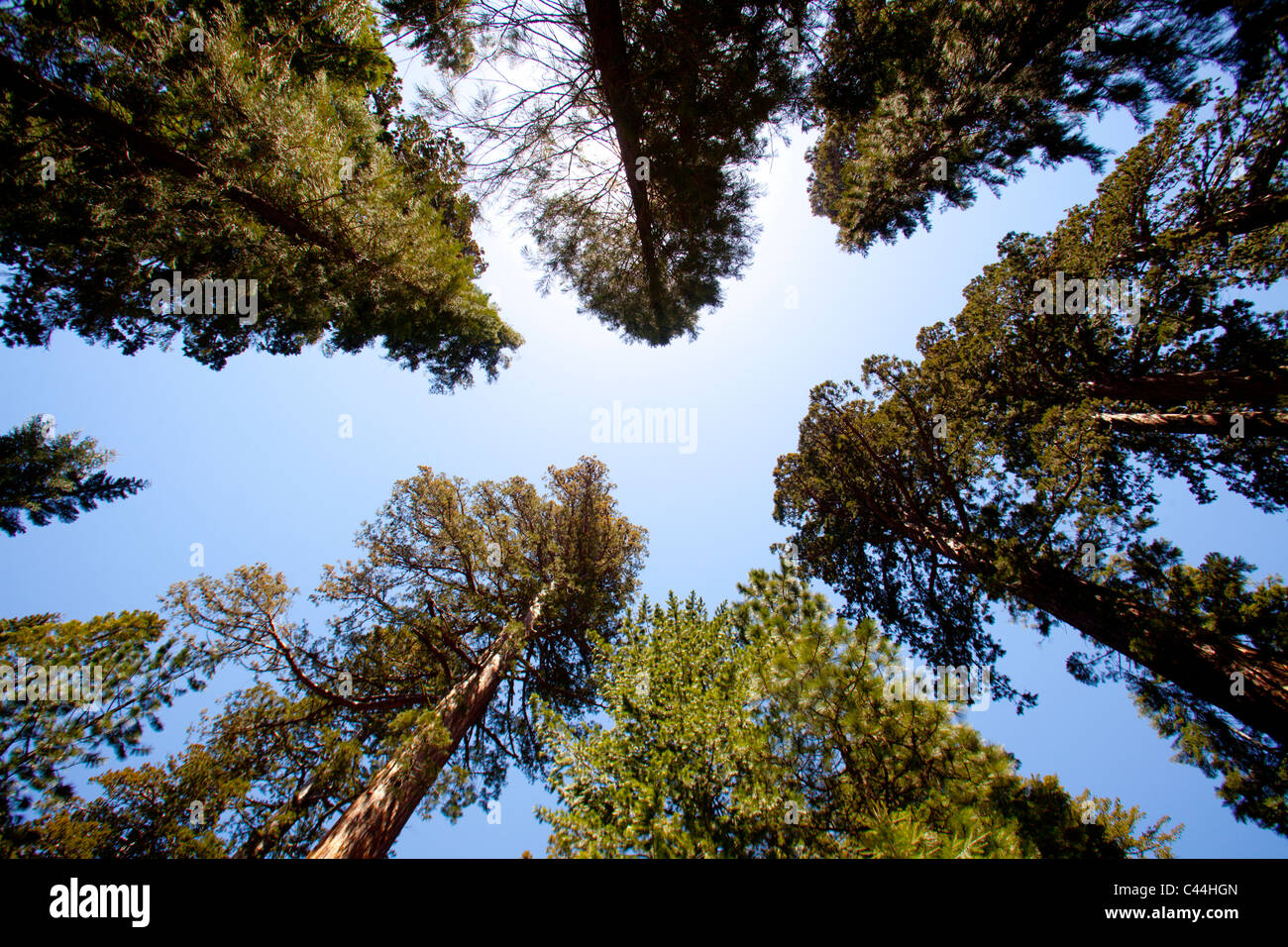 Tall trees in California shot photographed on a ultra wide angle lens